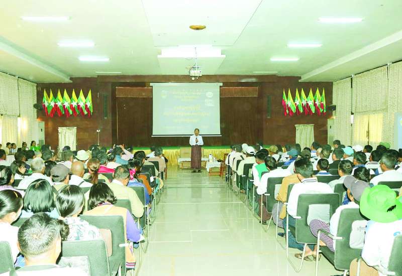နိုင်ငံတော်စီမံအုပ်ချုပ်ရေးကောင်စီအဖွဲ့ဝင် မန်းငြိမ်းမောင်သည် ယနေ့နံနက်ပိုင်းတွင် ရေဆင်းစိုက်ပျိုးရေးသုတေသနဦးစီးဌာန၏ (၆၄)ကြိမ်မြောက် တောင်သူနည်းပညာဆွေးနွေးပွဲသို့ တက်ရောက်အားပေးသည်။