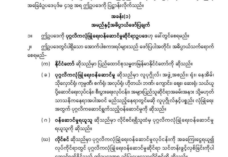 ပုဂ္ဂလိကလုံခြုံရေးဝန်ဆောင်မှုဆိုင်ရာဥပဒေ
