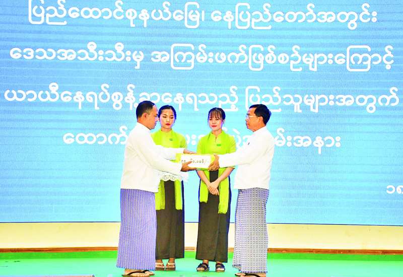 အကြမ်းဖက်ဖြစ်စဉ်များကြောင့် ပြည်ထောင်စုနယ်မြေ နေပြည်တော်အတွင်း ရောက်ရှိနေသော ယာယီနေရပ်စွန့်ခွာပြည်သူများအတွက် ထောက်ပံ့ငွေပေးအပ်ပွဲကို ယနေ့မွန်းလွဲပိုင်းတွင် နေပြည်တော်ကောင်စီရုံး ဇမ္ဗူသီရိခန်းမ၌ကျင်းပရာ နေပြည်တော်ကောင်စီဥက္ကဋ္ဌ ဦးသန်းထွန်းဦး၊ နေပြည်တော်ကောင်စီဝင်များ၊ နေပြည်တော်စည်ပင်သာယာရေးကော်မတီ ကော်မတီဝင်များ၊ တာဝန်ရှိသူများနှင့် ယာယီနေရပ်စွန့်ခွာနေရသည့် ပြည်သူများတက်ရောက်ကြသည်။