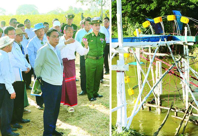 နိုင်ငံတော်စီမံအုပ်ချုပ်ရေးကောင်စီအဖွဲ့ဝင် မန်းငြိမ်းမောင်သည် ပဲခူးတိုင်းဒေသကြီးဝန်ကြီးချုပ် ဦးမျိုးဆွေဝင်းနှင့်အတူ ယနေ့နံနက်ပိုင်းက ပြည်ခရိုင်အတွင်း စိုက်ပျိုးရေးလုပ်ငန်းများကို ကွင်းဆင်းကြည့်ရှု အားပေးသည်။