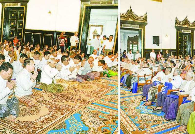မြန်မာနိုင်ငံစာရေးဆရာအသင်း ၁၃၈၆ ခုနှစ် မြန်မာနိုင်ငံစာဆိုတော်နေ့အထိမ်းအမှတ် သက်ကြီးစာပေပညာရှင်များ ပူဇော်ကန်တော့ပွဲအခမ်းအနားကို ယနေ့နံနက် ၉ နာရီတွင် ရန်ကုန်မြို့ မြို့တော်ခန်းမ၌ကျင်းပရာ နိုင်ငံတော်စီမံအုပ်ချုပ်ရေးကောင်စီဥက္ကဋ္ဌ နိုင်ငံတော်ဝန်ကြီးချုပ် ဗိုလ်ချုပ်မှူးကြီးမင်းအောင်လှိုင်နှင့် ဇနီးဒေါ်ကြူကြူလှတို့က ငွေကျပ်သိန်း ၁၀၀ နှင့် ၁၂၆ သိန်းကျော်တန်ဖိုးရှိ အဝတ်အထည်များအား ပေးအပ်လှူဒါန်းသည်။