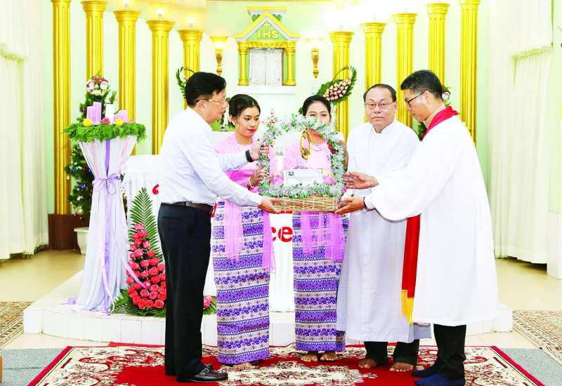 ခရစ်တော်မွေးနေ့ (ခရစ္စမတ်) ကျေးဇူးတော်ချီးမွမ်းခြင်း အခမ်းအနားကို ယနေ့နံနက်ပိုင်းတွင် နေပြည်တော်ကောင်စီနယ်မြေ ပျဉ်းမနားမြို့ ရန်အောင်(၁)ရပ်ကွက်ရှိ စိန့်မိုင်ကယ်ကက်သလစ်ဘုရားကျောင်း၌ ကျင်းပရာ နိုင်ငံတော်စီမံအုပ်ချုပ်ရေးကောင်စီအတွင်းရေးမှူး ဗိုလ်ချုပ်ကြီး အောင်လင်းဒွေး တက်ရောက်သည်။