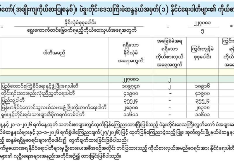 ရန်ကုန်မြို့နှင့် မန္တလေးမြို့အတွက် ရည်ညွှန်းလက်ကားဈေးနှုန်းများနှင့် ပြည်ထောင်စုနယ်မြေ နေပြည်တော်၊ တိုင်းဒေသကြီး/ ပြည်နယ် မြို့တော်များအတွက် ရည်ညွှန်းလက်လီဈေးနှုန်းများ