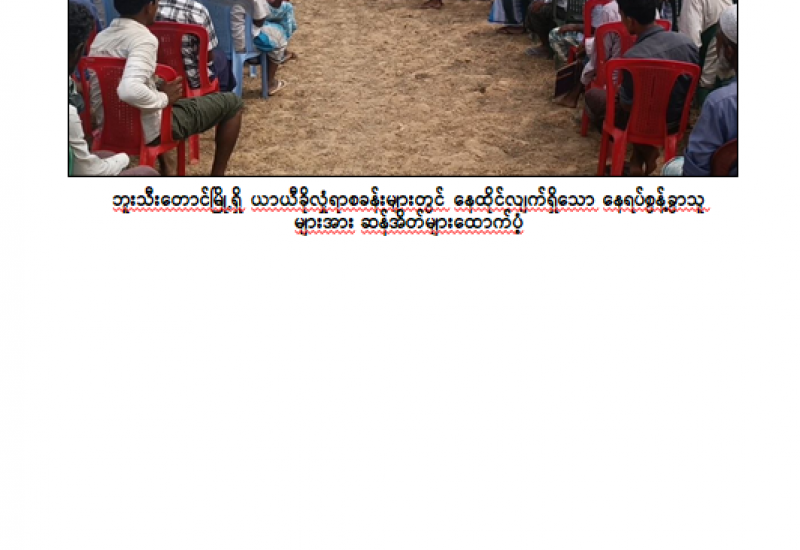 AA အကြမ်းဖက်သောင်းကျန်းသူများက ဧပြီလ ၁၂ ရက်နေ့တွင် ကွန်တိုင်ကျေးရွာ၊ ရွက်ညိုတောင်ကျေးရွာနှင့် ဦးလှဖေကျေးရွာအတွင်းသို့ အကြောင်းမဲ့လက်နက်ကြီးများဖြင့် ပစ်ခတ်ခြင်း၊ မီးရှို့ခြင်းများကြောင့် ကြောက်ရွံ့၍ရှောင်တိမ်းလာသော ရခိုင်ပြည်နယ်၊ ဘူးသီးတောင်မြို့ရှိ ယာယီခိုလှုံရာစခန်း ၃ ခုတွင် ခေတ္တခိုလှုံနေထိုင်လျက်ရှိသည့် အိမ်ထောင်စုဝင် ယာယီနေရပ်စွန့်ခွာသူများအား ဆန်အိတ်များ ထောက်ပံ့ပေးအပ်ခြင်းကို ယနေ့နံနက်ပိုင်းတွင် အဆိုပါမြို့ရှိ အမှတ် (၁) အခြေခံပညာအထက်တန်းကျောင်း၌ပြုလုပ်ရာ နယ်မြေခံတပ်နယ်မှ တာဝန်ရှိသူများ၊ ဌာနဆိုင်ရာတာဝန်ရှိသူများ၊ ရပ်မိရပ်ဖများနှင့် ယာယီနေရပ်စွန့်ခွာသူ အိမ်ထောင်စုဝင်များ တက်ရောက်ကြသည်။