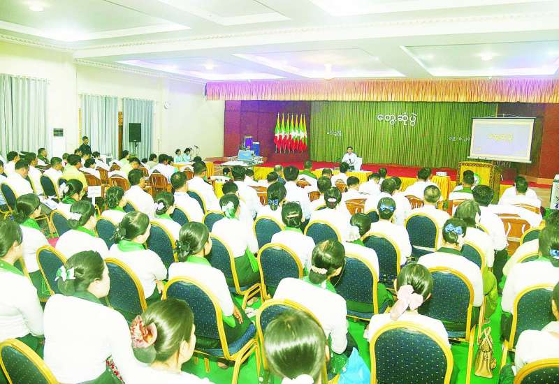 ပါတီစုံဒီမိုကရေစီအထွေထွေရွေးကောက်ပွဲ အောင်မြင်စွာကျင်းပနိုင်ရန် ရွေးကောက်ပွဲကော်မရှင် အဖွဲ့ခွဲအဆင့်ဆင့်ရှိဥက္ကဋ္ဌ၊ အဖွဲ့ဝင်များနှင့် ဝန်ထမ်းများအတွက် ရွေးကောက်ပွဲဆိုင်ရာ စွမ်းရည်မြှင့်သင်တန်းဖွင့်ပွဲ အခမ်းအနားကို ယနေ့နံနက် ၈ နာရီခွဲက နေပြည်တော်ရှိ ပြည်ထောင်စုရွေးကောက်ပွဲကော်မရှင်ရုံး၌ကျင်းပရာ ပြည်ထောင်စုရွေးကောက်ပွဲကော်မရှင်ဥက္ကဋ္ဌ ဦးသန်းစိုး၊ အဖွဲ့ဝင်များ၊ တိုင်းဒေသကြီး၊ ပြည်နယ်၊ ပြည်ထောင်စုနယ်မြေနှင့် ခရိုင်ရွေးကောက်ပွဲကော်မရှင် အဖွဲ့ခွဲအဆင့်ဆင့်မှ ဥက္ကဋ္ဌနှင့်အဖွဲ့ဝင်များ၊ တာဝန်ရှိသူများ တက်ရောက်ကြသည်။