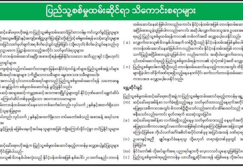 ပြည်ထောင်စုကြီးအတွင်း မှီတင်းနေထိုင်ကြသည့် တိုင်းရင်းသားပြည်သူများ၏ အသက်အိုးအိမ်စည်းစိမ်များကို နိုင်ငံတော်၏ ဆိုင်ရာအဖွဲ့အစည်းများက ကာကွယ်စောင့်ရှောက်ပေးရန် တာဝန်ရှိသော်လည်း မိမိရပ်ရွာနေအိမ်များကို မိမိတို့ကိုယ်တိုင်လည်း ပါဝင်ကာကွယ်စောင့်ရှောက်ရန် တာဝန်ရှိပေသည်။ နိုင်ငံတော်က ပြဋ္ဌာန်းထားသည့် ဖွဲ့စည်းပုံအခြေခံဥပဒေတွင် နိုင်ငံသားတိုင်းသည် နိုင်ငံတော်ကို ကာကွယ်စောင့်ရှောက်ရန်တာဝန်ရှိသည်ဟု ပြဋ္ဌာန်းထားသည်။