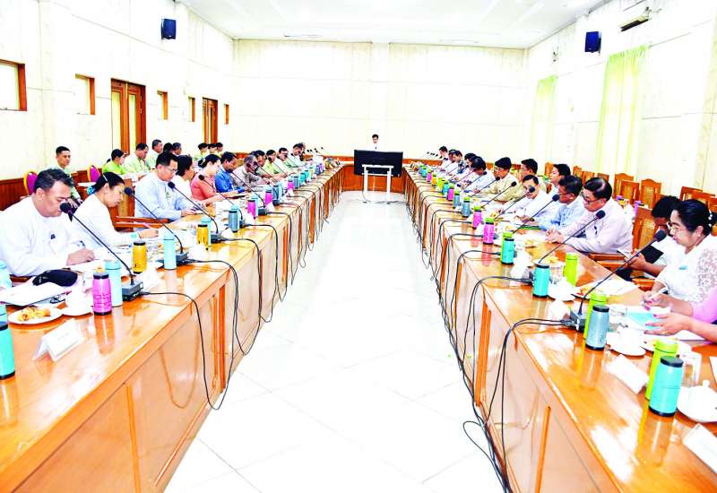 ပြည်ထောင်စုနယ်မြေ နေပြည်တော်အတွင်း တရားမဝင်ကုန်သွယ်ရေးလုပ်ငန်းများမရှိစေရေး လုပ်ငန်း ညှိနှိုင်းအစည်းအဝေး (၃/၂၀၂၄) ကို ယနေ့မွန်းလွဲ ၂ နာရီတွင် နေပြည်တော်ကောင်စီရုံး အစည်းအဝေးခန်းမ၌ကျင်းပရာ နေပြည်တော်ကောင်စီဥက္ကဋ္ဌ ဦးသန်းထွန်းဦး၊ နေပြည်တော်ကောင်စီဝင်များ၊ နေပြည်တော်အဆင့် ဌာနဆိုင်ရာများ၊ ခရိုင်နှင့် မြို့နယ်စီမံအုပ်ချုပ်ရေးအဖွဲ့ဥက္ကဋ္ဌများနှင့် စီးပွားရေးလုပ်ငန်းရှင်များ တက်ရောက်ကြသည်။