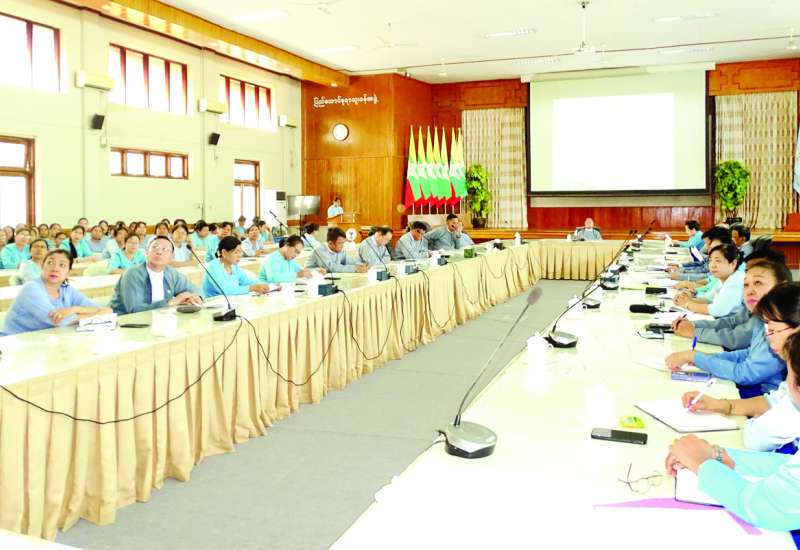 ပြည်သူ့စစ်မှုထမ်းဥပဒေဆိုင်ရာ အသိပညာပေးဟောပြောပွဲအခမ်းအနားကို ယနေ့နံနက်ပိုင်းက သမဝါယမနှင့်ကျေးလက်ဖွံ့ဖြိုးရေးဝန်ကြီးဌာန အစည်းအဝေးခန်းမ၌ကျင်းပရာ ပြည်ထောင်စုဝန်ကြီး ဦးလှမိုး၊ ဒုတိယဝန်ကြီး ဦးမြင့်စိုး၊ အမြဲတမ်းအတွင်းဝန်၊ ညွှန်ကြားရေးမှူးချုပ်များနှင့် အရာထမ်း၊ အမှုထမ်း ဝန်ထမ်းများ တက်ရောက်ကြသည်။