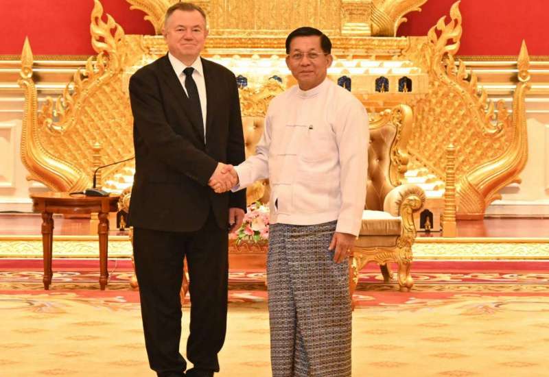 နိုင်ငံတော်စီမံအုပ်ချုပ်ရေးကောင်စီဥက္ကဋ္ဌ နိုင်ငံတော်ဝန်ကြီးချုပ် ဗိုလ်ချုပ်မှူးကြီး မင်းအောင်လှိုင်ထံ ဥရောပအာရှစီးပွားရေးကော်မရှင်၊ အကြီးစားစီးပွားရေးနှင့် ပေါင်းစည်းရေးဝန်ကြီး H.E. Mr. Sergei GLAZEV ဦးဆောင်သော ကိုယ်စားလှယ်အဖွဲ့က ယနေ့မွန်းလွဲပိုင်းတွင် နေပြည်တော်ရှိ နိုင်ငံတော်စီမံအုပ်ချုပ်ရေးကောင်စီဥက္ကဋ္ဌရုံး သံတမန်ဆောင်ဧည့်ခန်းမ၌ လာရောက်ဂါရဝပြု တွေ့ဆုံသည်။