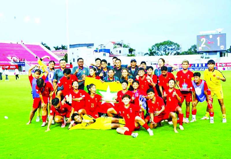 ဗီယက်နမ်နိုင်ငံက အိမ်ရှင်အဖြစ် လက်ခံကျင်းပနေသည့် ၂၀၂၅ အာဆီယံအမျိုးသမီးချန်ပီယံရှစ်ပြိုင်ပွဲ ဆီမီးဖိုင်နယ်တွင် ထိုင်းအသင်းအား နှစ်ဂိုး-တစ်ဂိုးဖြင့် အနိုင်ယူပြီး ဗိုလ်လုပွဲတက်ရောက်သွားခဲ့သည့် မြန်မာ့လက်ရွေးစင်အမျိုးသမီးအသင်းအား နိုင်ငံတော်လုံခြုံရေးနှင့်အေးချမ်းသာယာရေးကော်မရှင်ဥက္ကဋ္ဌ ဗိုလ်ချုပ်မှူးကြီး မင်းအောင်လှိုင်က စွမ်းဆောင်မှုဂုဏ်ပြုငွေ ဒေါ်လာ ၃၀၀၀၀ ချီးမြှင့်ခဲ့သည်။