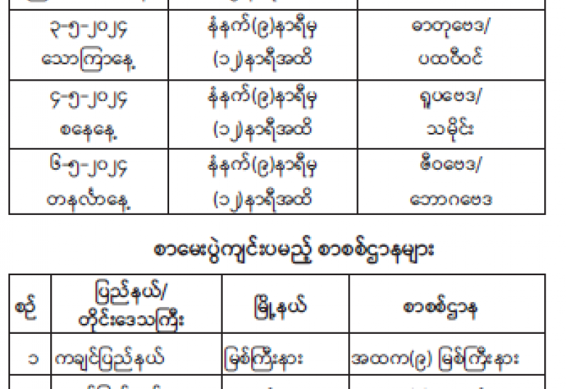 ၁။ ကျင်းပပြီးစီးခဲ့သည့် ၂၀၂၄ ခုနှစ်၊ တက္ကသိုလ်ဝင်စာမေးပွဲတွင် ဖြေဆိုရန် မှတ်ပုံတင်ထားပြီး ဖြစ်သော်လည်း လုံခြုံရေးအခြေအနေအရ တက္ကသိုလ်ဝင်စာမေးပွဲ ဖြေဆိုခွင့်မရခဲ့ကြသည့် ဒေသအချို့ရှိ ကျောင်းသား၊ ကျောင်းသူများအတွက် အထူးအစီအစဉ်တစ်ရပ်အနေဖြင့် သက်ဆိုင်ရာတိုင်းဒေသကြီးနှင့် ပြည်နယ်အစိုးရများ၏ ပံ့ပိုးကူညီပေးမှုနှင့် သတ်မှတ်ထားသည့် အခြေခံပညာကျောင်းများရှိ စာစစ်ဌာနများသို့ ကျောင်းသား၊ ကျောင်းသူများအား စုစည်းခေါ်ယူ၍ စာမေးပွဲ ဖြေဆိုစေမည်ဖြစ်ကြောင်း သတင်းထုတ်ပြန်ကြေညာခဲ့ပြီးဖြစ်ပါသည်။