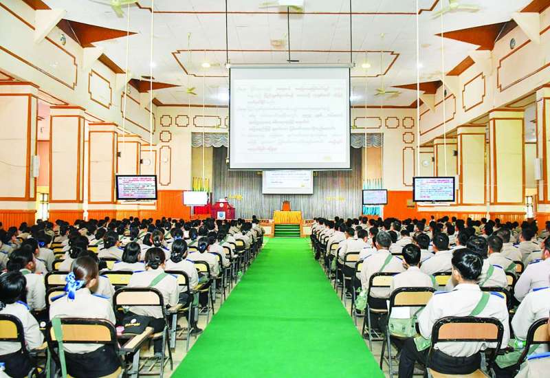 ပြည်သူ့စစ်မှုထမ်းဥပဒေနှင့်ပတ်သက်၍ အသိပညာပေးဆွေးနွေးပွဲအခမ်းအနားကို ယနေ့မွန်းလွဲပိုင်းတွင် နိုင်ငံ့ဝန်ထမ်းတက္ကသိုလ် (အထက်မြန်မာပြည်)၌ ကျင်းပသည်။