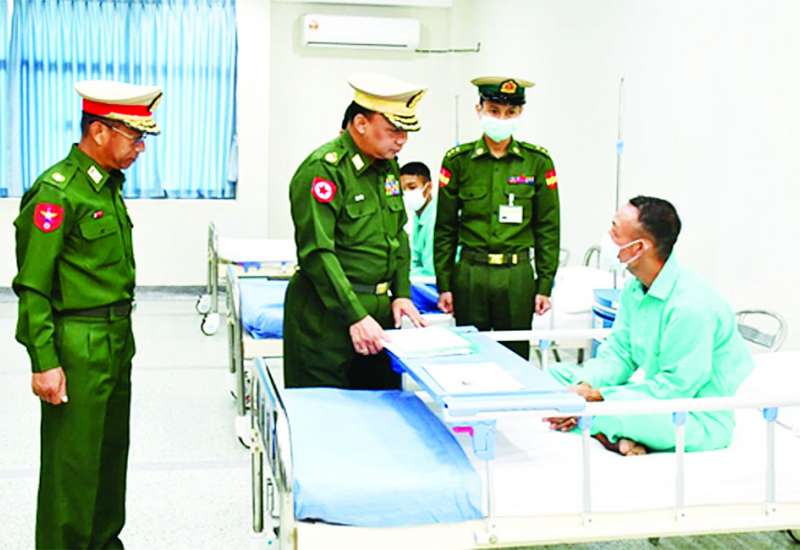 ကချင်ပြည်နယ် တနိုင်းမြို့ရှိ နယ်မြေခံတပ်မတော်ဆေးရုံ၊ တနင်္သာရီတိုင်းဒေသကြီး မြိတ်မြို့ရှိ တပ်မတော်ဆေးရုံ၊ ရန်ကုန်တိုင်းဒေသကြီး မင်္ဂလာဒုံမြို့နယ်ရှိ တပ်မတော်အရိုးရောဂါ အထူးကု ဆေးရုံကြီး (ခုတင်-၅၀၀) နှင့် တပ်မတော်ဆေးရုံကြီး (ခုတင်-၁၀၀၀)၊ စစ်ကိုင်းတိုင်းဒေသကြီးကလေးမြို့ရှိ တပ်မတော်ဆေးရုံ၊ ပဲခူးတိုင်းဒေသကြီး တောင်ငူမြို့ရှိ တပ်မတော်ဆေးရုံနှင့် ပြည်မြို့ရှိ တပ်မတော်ဆေးရုံတို့၌ တက်ရောက်ဆေးကုသမှုခံယူနေသော အရာရှိ၊ စစ်သည်၊ မိသားစုဝင် များ၊ မြန်မာနိုင်ငံ ရဲတပ်ဖွဲ့ဝင်များ၊ ပြည်သူ့စစ်(ဌာနေ)တပ်ဖွဲ့ဝင်နှင့် ဒေသခံပြည်သူများအား ယနေ့တွင် တိုင်းစစ်ဌာနချုပ်အသီးသီးမှ တိုင်းမှူးများနှင့် တာဝန်ရှိသူများက သွားရောက်ကြည့်ရှု၍ တစ်ဦးချင်း၏ ရောဂါဖြစ်ပွားမှု၊ ဆေးဝါးကုသပေးထားမှုနှင့် ကျန်းမာရေး တိုးတက်ကောင်းမွန်မှုအခြေအနေများကို ရင်းရင်းနှီးနှီးမေးမြန်း အားပေးစကားပြောကြားပြီး အာဟာရဖြည့် စားသောက်ဖွယ်ရာများ ပေးအပ်ကြသည်။