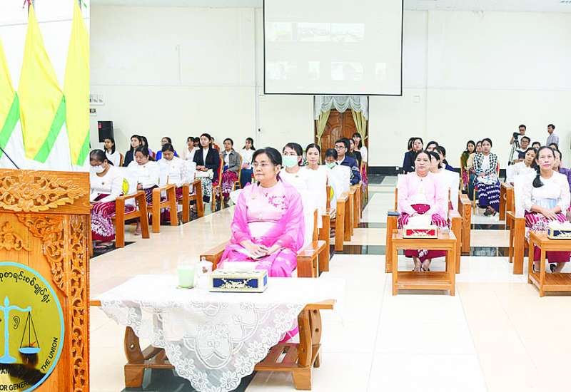 တရားရေးအရာရှိကြီးများ မွမ်းမံသင်တန်းအမှတ်စဉ် (၁/၂၀၂၄) သင်တန်းဆင်းပွဲအခမ်းအနားကို ယမန်နေ့မွန်းလွဲ ၃ နာရီတွင် ပြည်ထောင်စုတရားလွှတ်တော်ချုပ် အစည်းအဝေးခန်းမ၌ ကျင်းပရာ ပြည်ထောင်စုတရားသူကြီးချုပ် ဦးသာဌေး တက်ရောက်၍ သင်တန်းဆင်း အမှာစကားပြောကြားသည်။