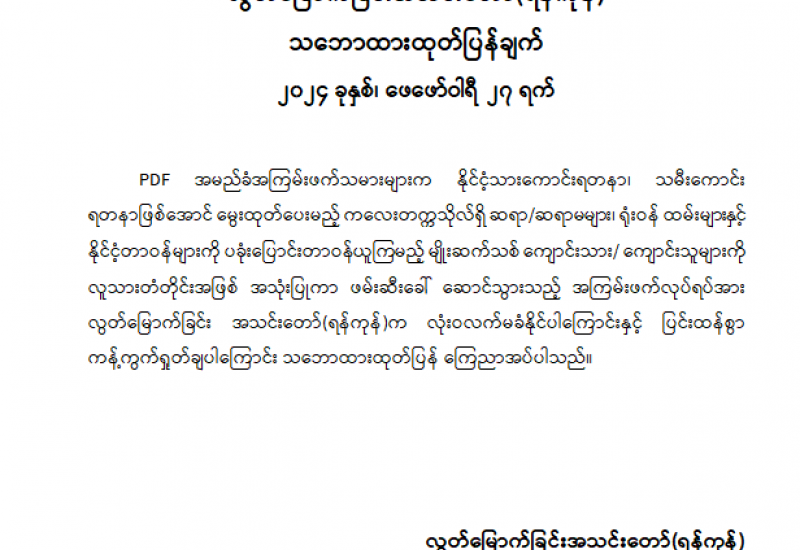 အကြမ်းဖက်အုပ်စုအဖြစ် ကြေညာထားသော CRPH ၊ NUG နှင့် ယင်းတို့၏ လက်ဝေခံအဖွဲ့အစည်းများ၊ ယင်းတို့နှင့်ဆက်နွှယ်နေသောအဖွဲ့အစည်းများ၊ လူပုဂ္ဂိုလ်များသည် နိုင်ငံတော်တည်ငြိမ်အေးချမ်းရေးကို ပျက်ပြားစေရန်နှင့် ပြည်သူလူထုကို အကြောက်တရားများ ဖြစ်ပေါ်စေပြီး အစိုးရယန္တရားများ ပျက်ပြားစေရန်ရည်ရွယ်လျက် လှုံ့ဆော်ခြင်း၊ ဝါဒဖြန့်ခြင်း၊ ခြိမ်းခြောက်ခြင်းများကို လူမှုကွန်ရက်များမှတစ်ဆင့် နည်းမျိုးစုံဖြင့် ပြုလုပ်လျက်ရှိပါသည်။