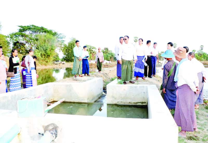 သမဝါယမနှင့် ကျေးလက်ဖွံ့ဖြိုးရေးဝန်ကြီးဌာန ပြည်ထောင်စုဝန်ကြီး ဦးလှမိုးသည် ယနေ့မွန်းလွဲပိုင်းက ဒုတိယဝန်ကြီး ဦးမြင့်စိုးနှင့်အတူ နေပြည်တော်ကောင်စီနယ်မြေ တပ်ကုန်းမြို့နယ် မကျီးပင်ကျေးရွာသို့သွားရောက်ပြီး ကျေးလက်ဒေသဖွံ့ဖြိုးတိုးတက်ရေး ဦးစီးဌာန၏ ၂၀၂၃-၂၀၂၄ ဘဏ္ဍာနှစ်ခွင့်ပြုရန်ပုံငွေဖြင့် ဆောင်ရွက်ခဲ့သော 7.7 KW Solar & 5.5 HP Surface Pump ဖြင့် စိုက်ပျိုးရေရရှိရေးလုပ်ငန်းကို ကြည့်ရှုစစ်ဆေးရာ ကျေးလက်ဒေသဖွံ့ဖြိုးတိုးတက်ရေးဦးစီးဌာန တိုင်းဒေသကြီး ဦးစီးမှူးက လုပ်ငန်းဆောင်ရွက်ခဲ့မှုကို ရှင်းလင်းတင်ပြပြီး ပြည်ထောင်စုဝန်ကြီးက ဆိုလာစနစ်ရေရရှိရေးကို လက်တွေ့ဆောင်ရွက်မည့် တောင်သူများ စနစ်တကျ မှန်ကန်စွာကိုင်တွယ်အသုံးပြုတတ်စေရေး သင်တန်းပို့ချပေးရန်နှင့် ဆောင်ရွက်ပြီး ဖွံ့ဖြိုးရေးလုပ်ငန်းများ ရေရှည်တည်တံ့ခိုင်မြဲရေးအတွက် တာဝန်ရှိသူများက ဝိုင်းဝန်းထိန်းသိမ်းစောင့်ရှောက်ရန် မှာကြားသည်။