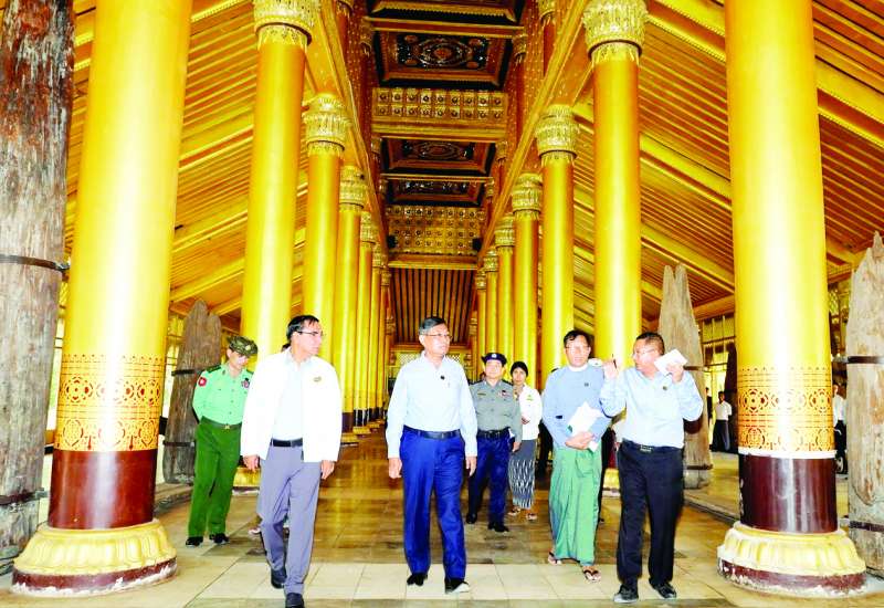 ဆောက်လုပ်ရေးဝန်ကြီးဌာန ပြည်ထောင်စုဝန်ကြီး ဦးမျိုးသန့်သည် ပဲခူးတိုင်းဒေသကြီး ဝန်ကြီးချုပ် ဦးမျိုးဆွေဝင်းနှင့်အတူ ယနေ့နံနက်ပိုင်းတွင် ပဲခူးမြို့ရှိအဆောက်အဦ ဦးစီးဌာန အဆောက်အဦ အထူးအဖွဲ့(၃)မှ ကမ္ဘောဇသာဒီနန်းတော် ပြုပြင် ထိန်းသိမ်းခြင်းလုပ်ငန်းများ ဆောင်ရွက်နေသည့် လုပ်ငန်းခွင်သို့ ရောက်ရှိစစ်ဆေးသည်။