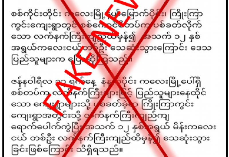 ၂၀၂၄ ခုနှစ် ဇန်နဝါရီ ၁၃ ရက်နေ့ နံနက်ပိုင်းက စစ်ကိုင်းတိုင်းဒေသကြီး၊ ကလေးမြို့ရှိ နယ်မြေခံတပ်ရင်းမှ လက်နက်ကြီးများဖြင့် ပြည်သူများနေထိုင်ရာ ကျေးရွာများသို့ ပစ်ခတ်လိုက်သောကြောင့် ကလေးမြို့နယ်မြောက်ပိုင်း၊ ကြိုးကြာကွင်းကျေးရွာမှ အသက် ၁၂ နှစ်အရွယ် ကလေးငယ်တစ်ဦးကျည်ထိမှန်၍ သေဆုံးခဲ့ကြောင်း သတင်းတု၊ သတင်းအမှားများကို တရားမဝင်ပြည်ဖျက်မီဒီယာ Khit Thit Media က လူမှုကွန်ရက်စာမျက်နှာများတွင် မဟုတ်မမှန်ရေးသားဖြန့်ဝေနေသည်ကို တွေ့ရှိရသည်။
