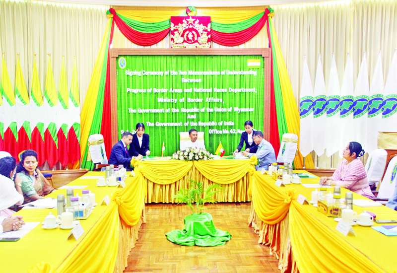 ပြည်ထောင်စုသမ္မတမြန်မာနိုင်ငံတော်အစိုးရနှင့် အိန္ဒိယသမ္မတ နိုင်ငံအစိုးရတို့အကြား “မြန်ဆန်စွာ အကျိုးဖြစ်ထွန်းစေမည့် စီမံချက်များ (Quick Impact Projects-QIP)” အကောင်အထည် ဖော်ဆောင်ရွက်ရန် နားလည်မှုစာချွန်လွှာ လက်မှတ်ရေးထိုးပွဲ အခမ်းအနားကို ယနေ့နံနက်ပိုင်းက နေပြည်တော်ရှိ နယ်စပ်ရေးရာဝန်ကြီးဌာန ဝန်ကြီးရုံး အစည်းအဝေးခန်းမ၌ ကျင်းပသည်။