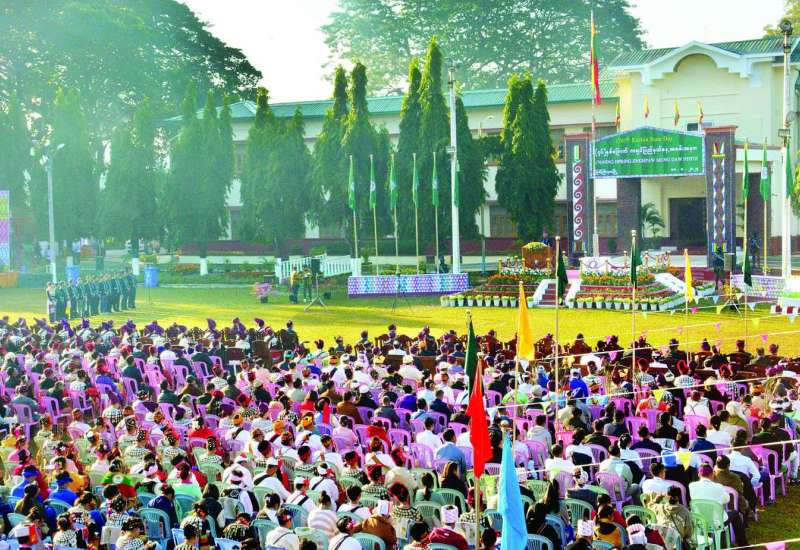 (၇၆) နှစ်မြောက် စိန်ရတုကချင်ပြည်နယ်နေ့ အထိမ်းအမှတ်အခမ်းအနားကို ယနေ့နံနက် ၈ နာရီတွင် ကချင်ပြည်နယ်အစိုးရအဖွဲ့ရုံးဝင်းရှေ့မြက်ခင်းပြင်၌ စည်ကားသိုက်မြိုက်စွာ ကျင်းပပြုလုပ်သည်။