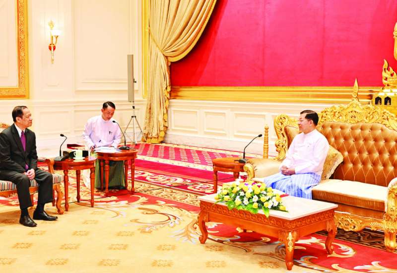 နိုင်ငံတော်စီမံအုပ်ချုပ်ရေးကောင်စီဥက္ကဋ္ဌ နိုင်ငံတော်ဝန်ကြီးချုပ်ဗိုလ်ချုပ်မှူးကြီး မင်းအောင်လှိုင်သည် အာဆီယံဥက္ကဋ္ဌ၏ မြန်မာနိုင်ငံဆိုင်ရာ အထူးကိုယ်စားလှယ်ဖြစ်သူ H.E. Mr. Alounkeo Kittikhoun အား ယနေ့နံနက်ပိုင်းတွင် နေပြည်တော်ရှိ နိုင်ငံတော်စီမံအုပ်ချုပ်ရေးကောင်စီဥက္ကဋ္ဌရုံး သံတမန်ဆောင်ဧည့်ခန်းမ၌ လက်ခံတွေ့ဆုံသည်။