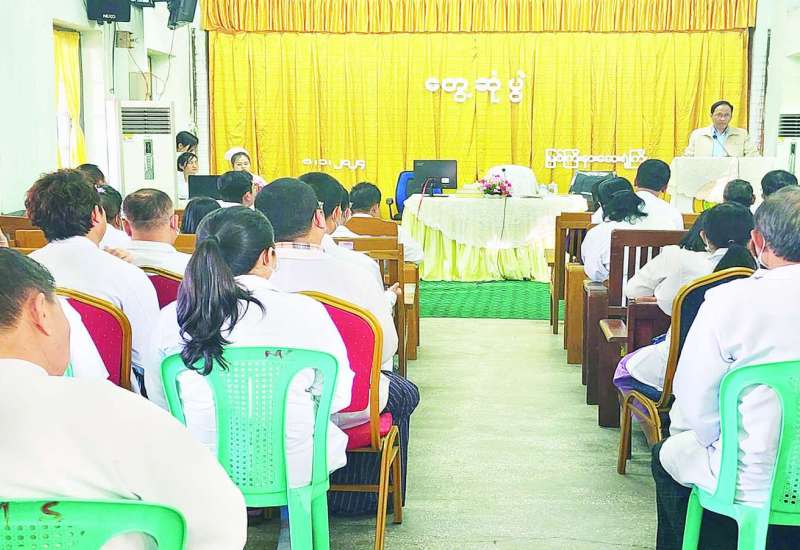 ကျန်းမာရေးဝန်ကြီးဌာနက ဦးဆောင်ကျင်းပသည့် မြန်မာနိုင်ငံ ရောဂါဗေဒပညာရပ်ဆိုင်ရာ နှီးနှောဖလှယ်ပွဲ (၂၀၂၄) (Myanmar Pathology Confer-ence 2024) ဖွင့်ပွဲအခမ်းအနားကို “Pathology Updates in Theranostic Era” ဆောင်ပုဒ်နှင့်အညီ ယနေ့နံနက်ပိုင်းက ဆေးတက္ကသိုလ်(၁) ရန်ကုန်လမ်းမတော်ဝင်း၌ ကျင်းပရာ ဖွင့်ပွဲအခမ်းအနားကို ကျန်းမာရေးဝန်ကြီးဌာန ဒုတိယဝန်ကြီး ပါမောက္ခဒေါက်တာအေးထွန်းက ဖဲကြိုးဖြတ်ဖွင့်လှစ်ပေးသည်။