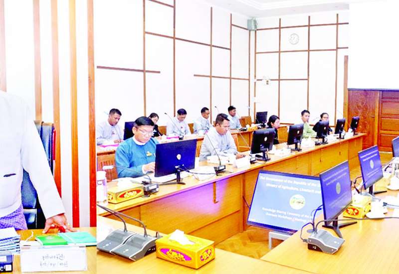 မွေးမြူရေးပညာရပ်ဆိုင်ရာ ပြည်ပသင်တန်းအတွေ့အကြုံများ ဆွေးနွေးဖလှယ်ခြင်းကို ယနေ့နံနက်ပိုင်းက စိုက်ပျိုးရေး၊ မွေးမြူရေးနှင့်ဆည်မြောင်းဝန်ကြီးဌာန ပြည်ထောင်စုဝန်ကြီးရုံး အစည်းအဝေးခန်းမ၌ ကျင်းပပြုလုပ်ရာ ဒုတိယဝန်ကြီး ဒေါက်တာအောင်ကြီး၊ ညွှန်ကြားရေးမှူးချုပ်များ၊ ဌာနဆိုင်ရာတာဝန်ရှိသူများ တက်ရောက်ကြသည်။