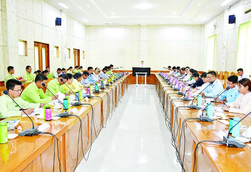 ပြည်ထောင်စုနယ်မြေ နေပြည်တော်အတွင်း MSME ကုန်ထုတ်လုပ်ငန်းများ ဖွံ့ဖြိုးတိုးတက်ရေးနှင့် အခွန်ဘဏ္ဍာငွေ ပြည့်ဝစွာရရှိရေးအတွက် အခွန်စည်းကြပ်မှုလုပ်ငန်းများကို ကြီးကြပ်ဆောင်ရွက်နိုင်ရေးနှင့် စပ်လျဉ်း၍ လုပ်ငန်းညှိနှိုင်းအစည်းအဝေးကို ယနေ့မွန်းတည့် ၁၂ နာရီတွင် နေပြည်တော်ကောင်စီရုံး အစည်းအဝေးခန်းမ(၁)၌ ကျင်းပရာ နေပြည်တော် ကောင်စီဥက္ကဋ္ဌ ဦးသန်းထွန်းဦး၊ နေပြည်တော်ကောင်စီအဖွဲ့ဝင်ဦးဇေယျာလင်း၊ ဌာနဆိုင်ရာများနှင့် ခရိုင်စီမံ အုပ်ချုပ်ရေးအဖွဲ့ဥက္ကဋ္ဌများ တက်ရောက်ကြသည်။