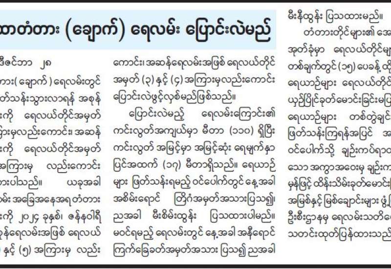 ရန်ကုန်မြို့နှင့် မန္တလေးမြို့အတွက် ရည်ညွှန်းလက်ကားဈေးနှုန်းများနှင့် ပြည်ထောင်စုနယ်မြေ နေပြည်တော်၊ တိုင်းဒေသကြီး/ ပြည်နယ် မြို့တော်များအတွက် ရည်ညွှန်းလက်လီဈေးနှုန်းများ