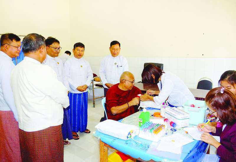 သာသနာရေးနှင့် ယဉ်ကျေးမှုဝန်ကြီးဌာန ဒုတိယဝန်ကြီး ဦးအေးထွန်းနှင့် နေပြည်တော် ကောင်စီအဖွဲ့ဝင် ဦးမြင့်စိုးတို့သည် ယမန်နေ့မွန်းလွဲ ၁ နာရီက ပြည်ထောင်စုနယ်မြေ နေပြည်တော် ဇမ္ဗူသီရိမြို့နယ်ရှိ နေပြည်တော် ခုတင် ၁၀၀၀ ပြည်သူ့ဆေးရုံကြီးတွင် ကျန်းမာရေးစစ်ဆေးမှုခံယူတော်မူသော ဆရာတော် ရှစ်ပါးနှင့် သီလရှင်ဆရာကြီး တစ်ပါးတို့ကို သွားရောက်အားပေး ကြည်ညိုခဲ့ကြသည်။