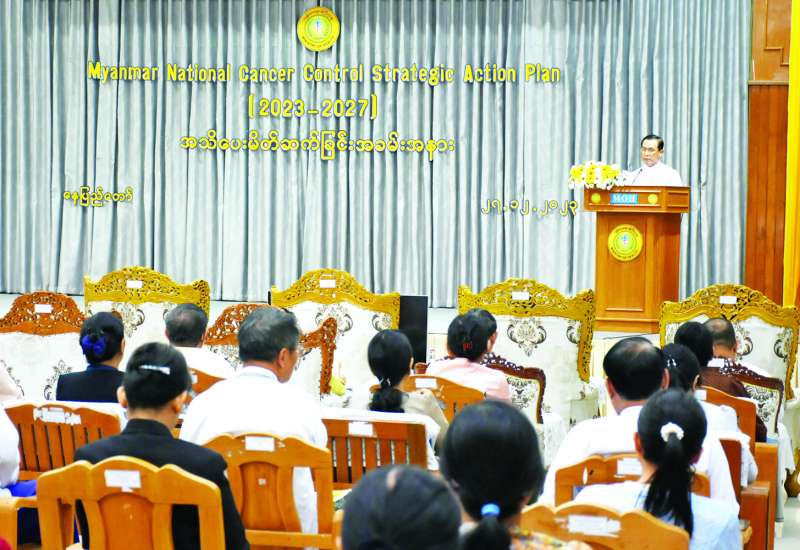 “Myanmar National Cancer Control Strategic Action Plan(2023-2027)” အသိပေး မိတ်ဆက်ခြင်း အခမ်းအနားကို ယနေ့နံနက် ၉ နာရီတွင် နေပြည်တော်ရှိ ကျန်းမာရေးဝန်ကြီးဌာန အစည်းအဝေးခန်းမ၌ ကျင်းပသည်။