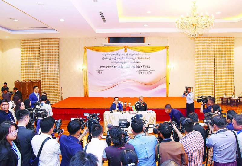 ကျောက်ဖြူအထူးစီးပွားရေးဇုန်တွင် ရေနက်ဆိပ်ကမ်းစီမံကိန်း အကောင်အထည်ဖော် ဆောင်ရွက်နိုင်ရေးအတွက် လုပ်ငန်းလုပ်ကိုင်ခွင့်သဘောတူစာချုပ် (Concession Agreement) ကို ဖြည့်စွက်သည့် နောက်ဆက်တွဲစာချုပ် (Adden-dum) လက်မှတ်ရေးထိုးခြင်း အခမ်းအနားကို ဒီဇင်ဘာ ၂၆ ရက် ညနေပိုင်းက နေပြည်တော်ရှိ Horizon Lake View Hotel ၌ ကျင်းပခဲ့သည်။ လက်မှတ်ရေးထိုးခြင်း အခမ်းအနားအပြီးတွင် မြန်မာအထူးစီးပွားရေးဇုန်ဆိုင်ရာ ဗဟိုလုပ်ငန်းအဖွဲ့ ဥက္ကဋ္ဌ ပြည်ထောင်စုအစိုးရအဖွဲ့ရုံးဝန်ကြီးဌာန (၁) ပြည်ထောင်စုဝန်ကြီး ဦးအောင်နိုင်ဦးက သတင်းမီဒီယာများနှင့် တွေ့ဆုံသည်။
