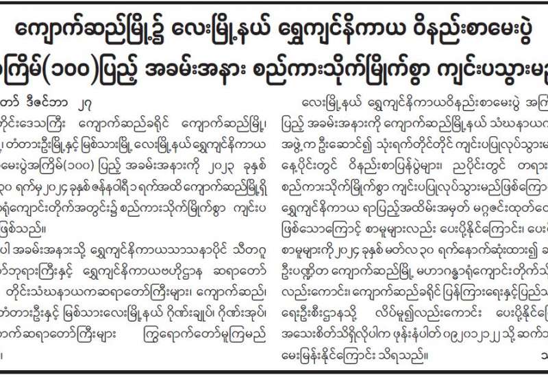 မြန်မာနိုင်ငံ၏ ပထမဆုံးသော နိုင်ငံတကာအဆင့်မီ ရေနက်ဆိပ်ကမ်းဖြစ်သည့် ကျောက်ဖြူရေနက်ဆိပ်ကမ်းစီမံကိန်းကို ဆောလျင်စွာ ပြန်လည်အကောင်အထည်ဖော်နိုင်ရေးအတွက် နောက်ဆက်တွဲစာချုပ်ကို သဘောတူလက်မှတ်ရေးထိုးလိုက်ပြီ ဖြစ်သည်။ ကျောက်ဖြူအထူးစီးပွားရေးဇုန်တွင် ရေနက်ဆိပ်ကမ်း စီမံကိန်း၊ စက်မှုဇုန်စီမံကိန်းနှင့် လူနေအိမ်ရာစီမံကိန်းဟူ၍ စီမံကိန်းသုံးရပ် ပေါင်းစပ်ပါဝင်လျက်ရှိရာ ရေနက်စီမံကိန်းကို ဦးစွာအကောင်အထည်ဖော်ခြင်းဖြင့် ကျောက်ဖြူအထူးစီးပွားရေးဇုန်၏ အစိတ်အပိုင်းတစ်ရပ် စတင်ပေါ်ထွန်းလာနိုင်မည်ဖြစ်သည်။