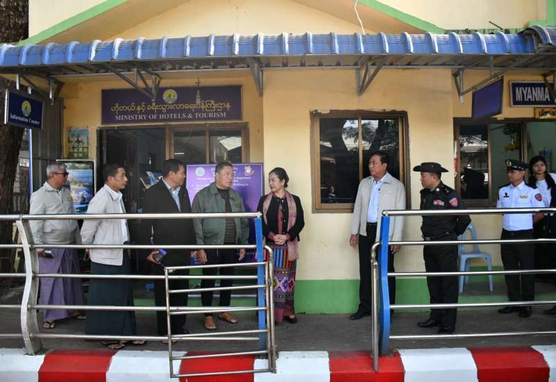 ဟိုတယ်နှင့်ခရီးသွားလာရေးဝန်ကြီးဌာန ပြည်ထောင်စုဝန်ကြီး ဒေါက်တာ သက်သက်ခိုင် သည် ယနေ့နံနက်ပိုင်းတွင် တာချီလိတ်မြို့ ရွှေတိဂုံစေတီတော်သို့ သွားရောက်ဖူးမျှော်ကာ ဘုရားဖူးခရီးသွားဧည့်သည်များ အဆင်ပြေချောမွေ့စွာ လာရောက်ဖူးမျှော်နိုင်ရေး ဆောင်ရွက်ထားရှိမှုများကို ကြည့်ရှုစစ်ဆေးသည်။