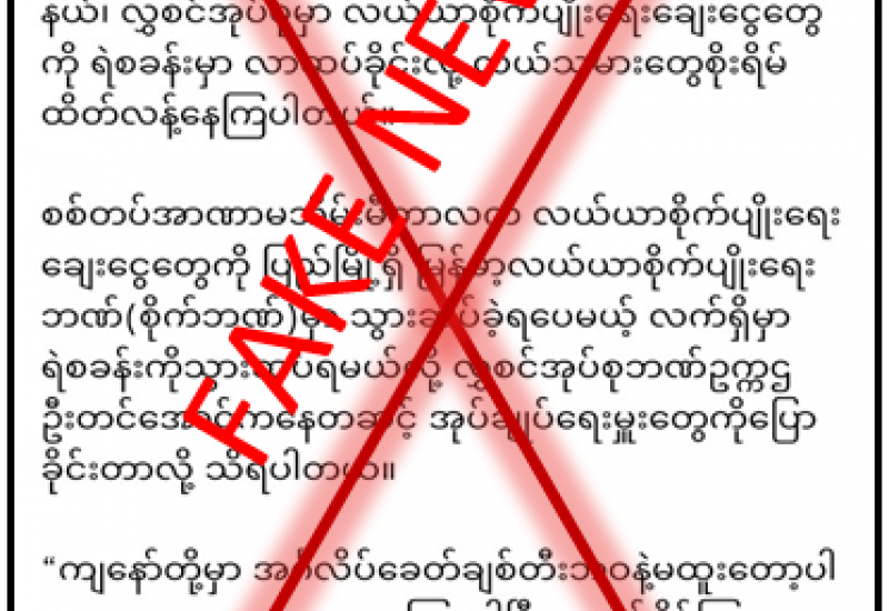 ပဲခူးတိုင်းဒေသကြီး၊ ပြည်ခရိုင်၊ ဝက်ထီးကန်တိုက်နယ်တွင် လယ်ယာစိုက်ပျိုးရေးချေးငွေများကို ရဲစခန်းမှာအတင်းအဓမ္မဆပ်ခိုင်းလို့ လယ်သမားများထိတ်လန့်နေကြောင်း၊ ချေးငွေမဆပ်နိုင်တဲ့သူတွေကို တရားစွဲပြီး ဖမ်းဆီးအရေးယူခိုင်းနေကြောင်း မဟုတ်မမှန် သတင်းတု၊ သတင်းအမှားများကို လူမှုကွန်ရက်စာမျက်နှာများတွင် ရေးသားဖြန့်ဝေနေသည်ကို တွေ့ရှိရသည်။