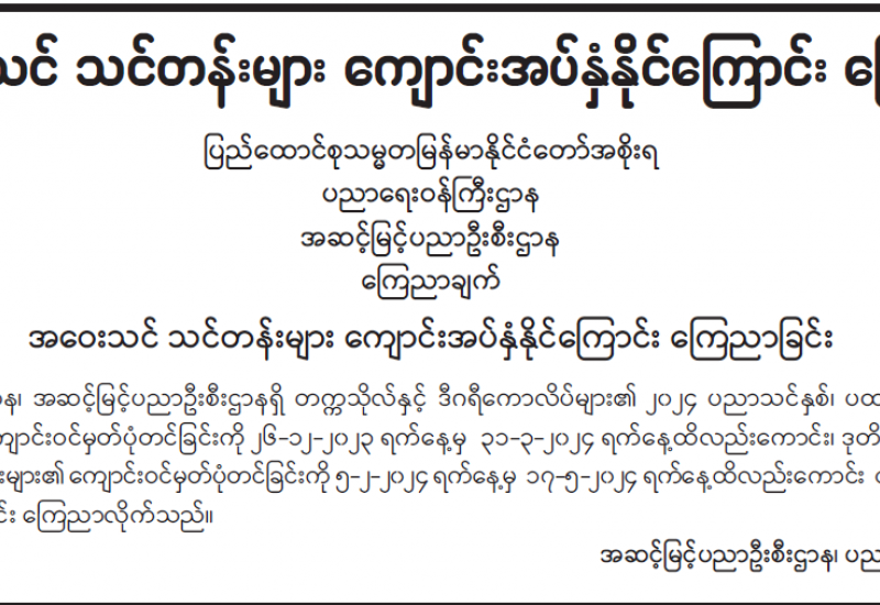 အဝေးသင် သင်တန်းများ ကျောင်းအပ်နှံနိုင်ကြောင်း ကြေညာ