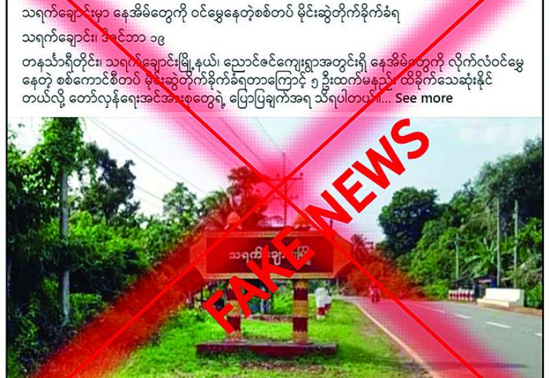 တနင်္သာရီတိုင်းဒေသကြီး သရက်ချောင်းမြို့နယ် ညောင်ဇင်ကျေးရွာအတွင်းရှိ နေအိမ်များကို ဒီဇင်ဘာ ၁၇ ရက်က ဝင်ရောက်မွှေနှောက်၍ တန်ဖိုးရှိပစ္စည်းများ အတင်းအဓမ္မရယူခဲ့သော စစ်ကြောင်းအား မိုင်းဆွဲတိုက်ခိုက်ခဲ့သည်ဟု ပြည်ဖျက်မီဒီယာတစ်ခုဖြစ်သည့် Than Lwin Times မှ မဟုတ်မမှန် ကောလာဟလသတင်းမှားများကို လူမှုကွန်ရက်စာမျက်နှာတွင် ဖြန့်ဝေလျက်ရှိသည်ကို တွေ့ရှိရသည်။