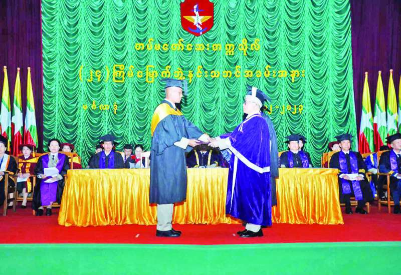 တပ်မတော်ဆေးတက္ကသိုလ်၏ (၂၄) ကြိမ်မြောက် ဘွဲ့နှင်းသဘင်အခမ်းအနားကို ယနေ့မွန်းလွဲပိုင်းတွင် တပ်မတော်ဆေးတက္ကသိုလ် ဘွဲ့နှင်းသဘင်ခန်းမ၌ကျင်းပရာ တပ်မတော်ဆေးတက္ကသိုလ် ခေတ္တကျောင်းအုပ်ကြီး ဗိုလ်မှူးချုပ်ဇော်မန်းဖြိုး၊ တပ်မတော်ဆေးတက္ကသိုလ်ပါမောက္ခချုပ် ဗိုလ်မှူးချုပ်ခင်အောင်ထွန်းနှင့် တပ်မတော်ဆေးတက္ကသိုလ်မှ ပညာရေးအဖွဲ့ဝင်များ စုံညီစွာတက်ရောက်ကြသည်။