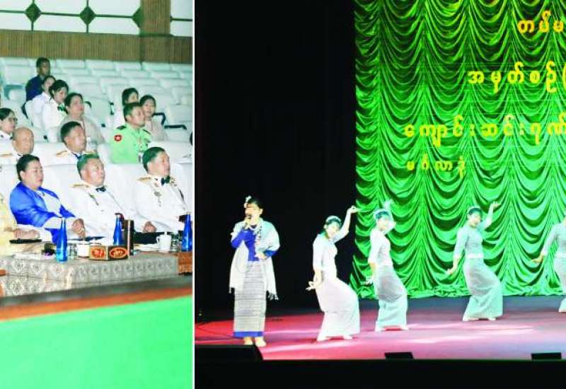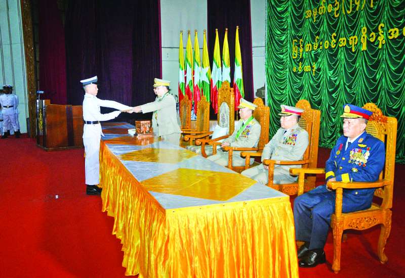 တပ်မတော်ဆေးတက္ကသိုလ်၊ ဗိုလ်လောင်းသင်တန်း အမှတ်စဉ် (၂၄) သင်တန်းဆင်း ဂုဏ်ပြုညစာစားပွဲ အခမ်းအနားကို ယနေ့ညနေပိုင်းတွင် ရန်ကုန်မြို့ရှိ တပ်မတော်ဆေးတက္ကသိုလ် ဘွဲ့နှင်းသဘင်ခန်းမဆောင်ကြီး၏ စုဝေးခန်းမ၌ ကျင်းပပြုလုပ်ရာ နိုင်ငံတော်စီမံအုပ်ချုပ်ရေးကောင်စီဥက္ကဋ္ဌ တပ်မတော်ကာကွယ်ရေးဦးစီးချုပ် ဗိုလ်ချုပ်မှူးကြီးမင်းအောင်လှိုင် တက်ရောက်ချီးမြှင့်သည်။