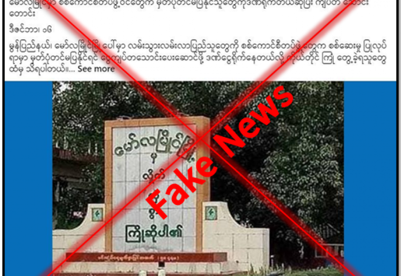 မွန်ပြည်နယ်၊ မော်လမြိုင်မြို့ပေါ်မှာ လမ်းသွားလမ်းလာပြည်သူတွေကို တပ်ဖွဲ့တွေက စစ်ဆေးမှုပြုလုပ်ရာမှာ မှတ်ပုံတင်မပြနိုင်ရင် ငွေကျပ်တစ်သောင်းပေးဆောင်ဖို့ ဒဏ်ငွေရိုက်နေသည်ဟု တရားမဝင်ပြည်ဖျက်မီဒီယာ တစ်ခုဖြစ်တဲ့ Delta News Agency က မဟုတ်မမှန်ကောလာဟလ သတင်းများကို လူမှုကွန်ရက်စာမျက်နှာတွင် ရေးသားဖြန့်ဝေလျက်ရှိသည်ကို တွေ့ရှိရပါသည်။
