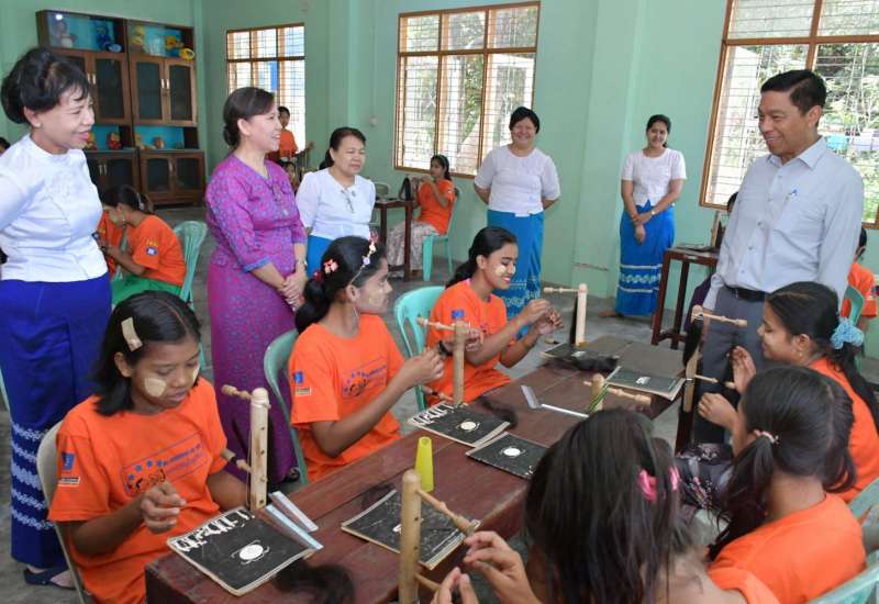 လူမှုဝန်ထမ်း၊ ကယ်ဆယ်ရေးနှင့် ပြန်လည်နေရာချထားရေးဝန်ကြီးဌာန ပြည်ထောင်စုဝန်ကြီး ဒေါက်တာစိုးဝင်းသည် ယနေ့နံနက်ပိုင်းတွင် ရန်ကုန်တိုင်းဒေသကြီး ထောက်ကြံ့အမျိုးသမီးလေးများ သင်တန်းကျောင်းသို့ ရောက်ရှိပြီး သင်တန်းသူများအား ကျောင်းပညာနှင့် အသက်မွေးဝမ်းကျောင်းပညာများ သင်ကြားပေးနေမှုကို ကြည့်ရှုစစ်ဆေးကာ ဘဝလမ်းကြောင်းကို အသိပညာ၊ အတတ်ပညာ၊ စဉ်းစားတွေးခေါ်တတ်မှုတို့ဖြင့် လျှောက်လှမ်းနိုင်ရေး ကြိုစားလေ့လာသင်ယူကြရန် မှာကြားသည်။