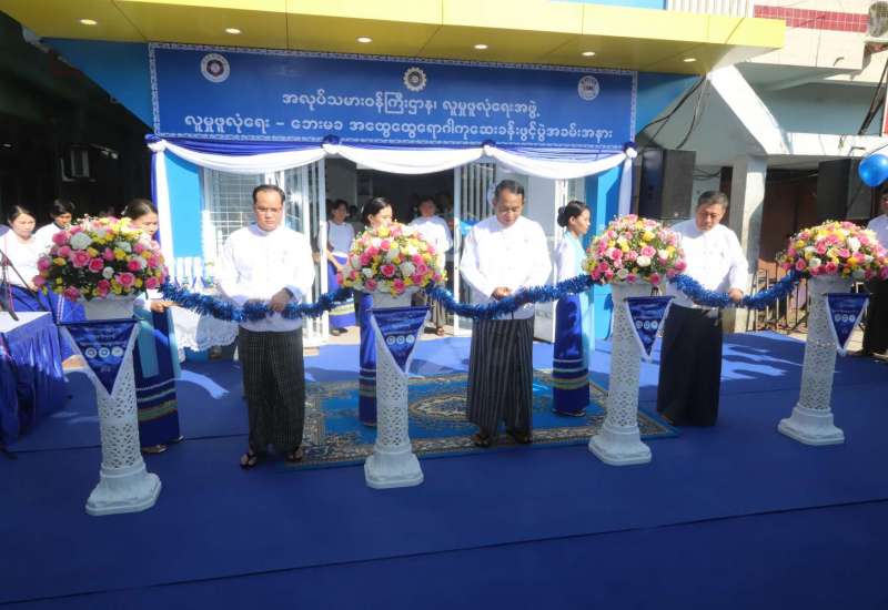 ရန်ကုန်တိုင်းဒေသကြီး ရွှေပြည်သာမြို့နယ် ရွှေပြည်သာစက်မှုဇုန်ရှိ လူမှုဖူလုံရေး-ဘေးမခ အထွေထွေရောဂါကုဆေးခန်း ဖွင့်ပွဲအခမ်းအနားကို ယနေ့နံနက်ပိုင်းတွင် ကျင်းပရာ အလုပ်သမားဝန်ကြီးဌာန ပြည်ထောင်စုဝန်ကြီး ဦးမြင့်နောင်၊ ရန်ကုန်တိုင်းဒေသကြီး တိုင်းရင်းသားရေးရာဝန်ကြီး ဦးစောဂျက်ကော့ထူး၊ လူမှုဖူလုံရေးအဖွဲ့ ညွှန်ကြားရေးမှူးချုပ်နှင့် တာဝန်ရှိသူများ၊ အကျုံးဝင်အလုပ်ဌာနများမှ အလုပ်ရှင်၊ အလုပ်သမားကိုယ်စားလှယ်များ၊ ဘေးမခဆေးခန်းမှ တာဝန်ရှိသူများ တက်ရောက်ကြပြီး အလုပ်သမားဝန်ကြီးဌာန ပြည်ထောင်စုဝန်ကြီးနှင့် တိုင်းဒေသကြီး တိုင်းရင်းသားရေးရာဝန်ကြီးတို့က ဖဲကြိုးဖြတ်ဖွင့်လှစ်ပေးကာ ဆေးခန်းကို လှည့်လည်ကြည့်ရှုကြသည်။