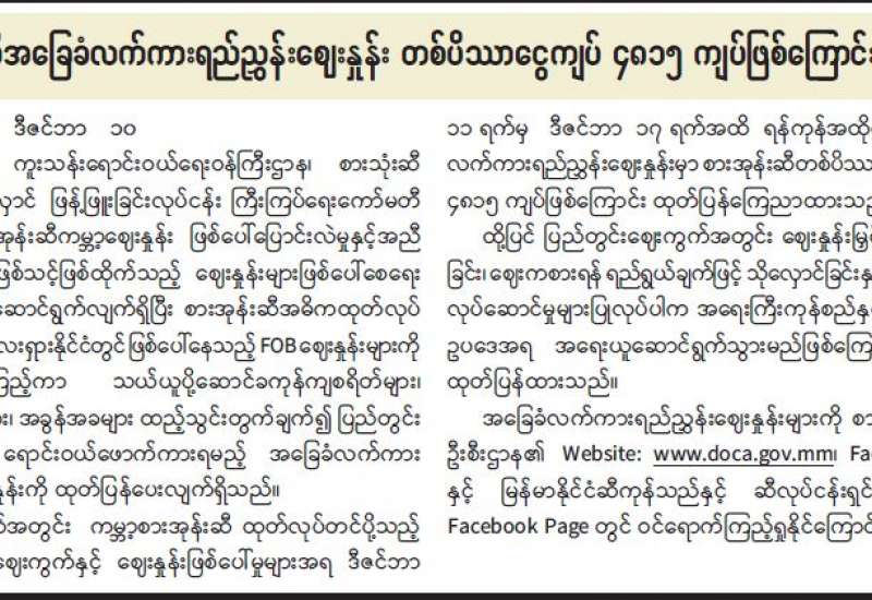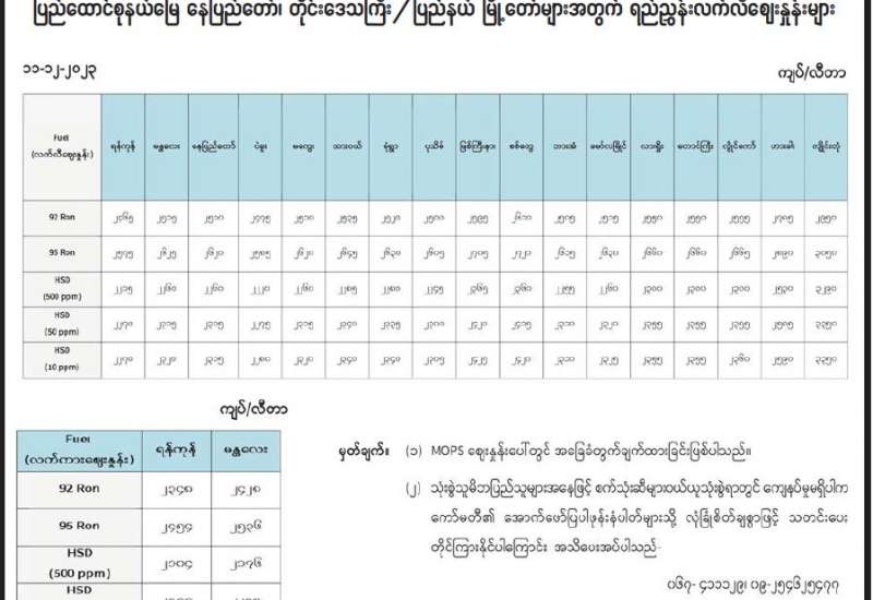 ရန်ကုန်မြို့နှင့် မန္တလေးမြို့အတွက် ရည်ညွှန်းလက်ကားဈေးနှုန်းများနှင့် ပြည်ထောင်စုနယ်မြေ နေပြည်တော်၊ တိုင်းဒေသကြီး/ ပြည်နယ် မြို့တော်များအတွက် ရည်ညွှန်းလက်လီဈေးနှုန်းများ