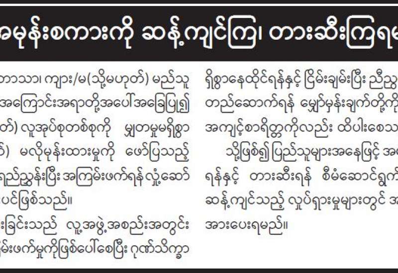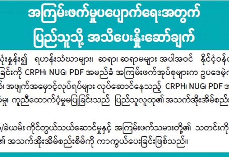 အကြမ်းဖက်မှုပပျောက်ရေးအတွက် ပြည်သူသို့ အသိပေးနှိုးဆော်ချက်