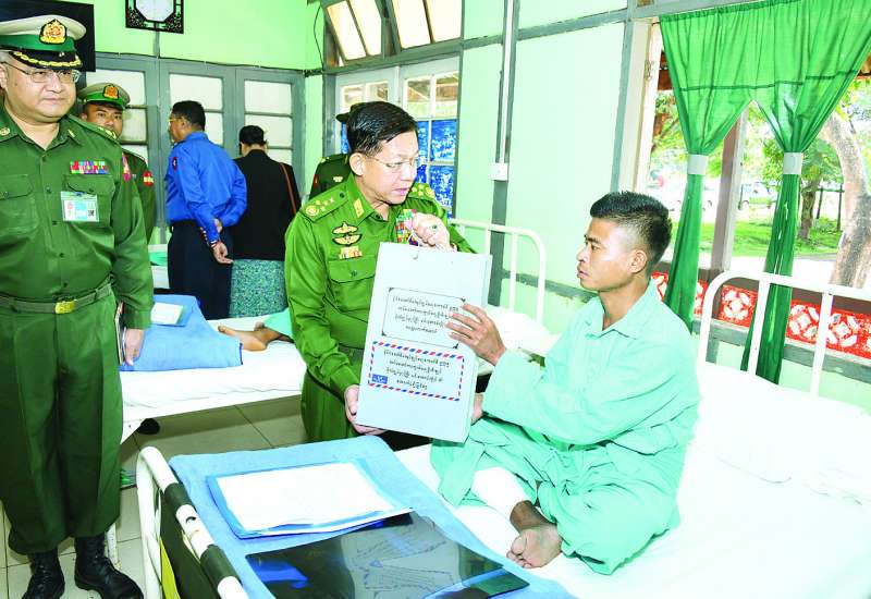 နိုင်ငံတော်စီမံအုပ်ချုပ်ရေးကောင်စီဥက္ကဋ္ဌ တပ်မတော်ကာကွယ်ရေးဦးစီးချုပ် ဗိုလ်ချုပ်မှူးကြီး မင်းအောင်လှိုင်သည် ဇနီး ဒေါ်ကြူကြူလှ၊ ညှိနှိုင်းကွပ်ကဲရေးမှူး (ကြည်း၊ ရေ၊ လေ) ဗိုလ်ချုပ်ကြီး မောင်မောင်အေးနှင့် ဇနီး၊ ကာကွယ်ရေးဦးစီးချုပ် (ရေ) ဗိုလ်ချုပ်ကြီး မိုးအောင်နှင့် ဇနီး၊ ကာကွယ်ရေးဦးစီးချုပ် (လေ) ဗိုလ်ချုပ်ကြီး ထွန်းအောင်နှင့် ဇနီး၊ ကာကွယ်ရေးဦးစီးချုပ်ရုံးမှ အဆင့်မြင့် တပ်မတော်အရာရှိကြီးများနှင့် ဇနီးများ လိုက်ပါ၍ ယနေ့နံနက်ပိုင်းတွင် ရှမ်းပြည်နယ် (မြောက်ပိုင်း) လားရှိုးမြို့ရှိ နယ်မြေခံတပ်မတော်ဆေးရုံ၌ တက်ရောက်ကုသမှုခံယူလျက်ရှိသည့် နိုင်ငံတော်ကာကွယ်ရေးနှင့် လုံခြုံရေးတာဝန်များ ထမ်းဆောင်စဉ် ထိခိုက်ဒဏ်ရာရရှိခဲ့သော အရာရှိ၊ စစ်သည်များ၊ မြန်မာနိုင်ငံရဲတပ်ဖွဲ့ ဝင်များအား သွားရောက်ကြည့်ရှု အားပေးစကားပြောကြားသည်။