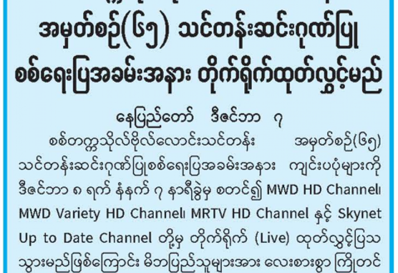 ရန်ကုန်တိုင်းဒေသကြီးနယ်မြေ မဲဆန္ဒရှင်ပြည်သူများ၏ မြန်မာအီလက်ထရောနစ် မဲပေးစက်ဖြင့် လက်တွေ့စမ်းသပ်မဲပေးလေ့လာခြင်းကို ဒီဇင်ဘာ ၄ ရက်မှစ၍ ခရိုင်နယ်မြေများအလိုက် ဆောင်ရွက်လျက်ရှိရာ ယနေ့တွင် လှိုင်သာယာ (အရှေ့ပိုင်း) မြို့နယ် ရပ်ကျေးခြောက်ခုမှ ပြည်သူ ၄၂၂ ဦး၊ ဒဂုံမြို့သစ်(အရှေ့ပိုင်း)မြို့နယ် ရပ်ကျေး ၂၂ ခုမှ ပြည်သူ ၃၇၃ ဦး၊ ကျောက်တန်းမြို့နယ် ရပ်ကျေး ၅၈ ခုမှ ပြည်သူ ၅၉၃ ဦး၊ ပန်းဘဲတန်းမြို့နယ် ရပ်ကွက်ငါးခု မှ ပြည်သူ ၄၀၅ ဦး စုစုပေါင်း ၁၇၉၃ ဦး တက်ရောက်ပြီး လက်တွေ့စမ်းသပ်မဲပေး လေ့လာခဲ့သည်။