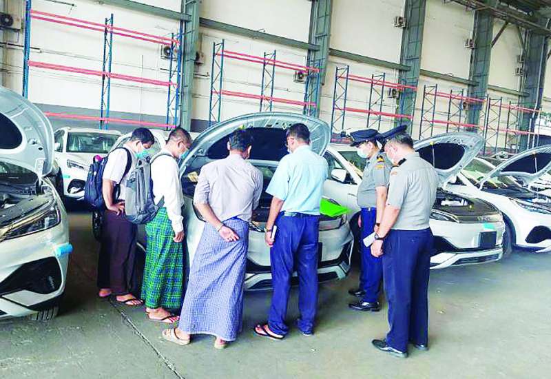 အမျိုးသားအဆင့် လျှပ်စစ်သုံးယာဉ်နှင့် ဆက်စပ်လုပ်ငန်းများ ဖွံ့ဖြိုးတိုးတက်ရေး ဦးဆောင်ကော်မတီ၏ ခွင့်ပြုချက်ဖြင့် Innogen Myanmar Co., Ltd. က တင်သွင်းလာသော တရုတ်နိုင်ငံထုတ် GAC Toyota BZ4X အမျိုးအစား လျှပ်စစ်သုံးမော်တော်ယာဉ်များ၊ Essential Motor Co., Ltd. က တင်သွင်းလာသော တရုတ်နိုင်ငံထုတ် BYD Atto3 EV အမျိုးအစား လျှပ်စစ်သုံး မော်တော်ယာဉ်များနှင့် Chin Dwin Shan Construction Co., Ltd. က တင်သွင်းလာသော Faw Toyota bZ4X အမျိုးအစားလျှပ်စစ်သုံးမော်တော်ယာဉ်များသည် ရန်ကုန် ဆိပ်ကမ်းသို့ရောက်ရှိလာသဖြင့် ယနေ့တွင် လုပ်ထုံးလုပ်နည်းနှင့်အညီ ထုတ်ယူခွင့်ပြုခဲ့ကြောင်း သိရသည်။