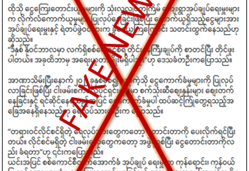 ဧရာဝတီတိုင်းဒေသကြီး၊ ဘိုကလေးမြို့နယ်၊ ဧရာကျေးရွာတွင် ကျေးရွာအုပ်ချုပ်ရေးမှူးများနှင့် ရဲတပ်ဖွဲ့ဝင်များက ၃ လလျှင်တစ်ကြိမ် ငွေကြေးကောက်ခံမှုများကို ပြုလုပ်လျက်ရှိပြီး ကမ်းဝေးငါးဖမ်းစက်လှေပိုင်ရှင်များထံမှ စက်လှေတစီးလျှင် ငွေကျပ် ၅ သိန်း ကောက်ခံနေသည်ဟု မဟုတ်မမှန် ကောလာဟလသတင်းမှားများကို တရားမဝင်ပြည်ဖျက်မီဒီယာ Mizzima မှ လူမှုကွန်ရက်စာမျက်နှာတွင် ရေးသားဖြန့်ဝေလျက်ရှိသည်ကို တွေ့ရှိရပါသည်။
