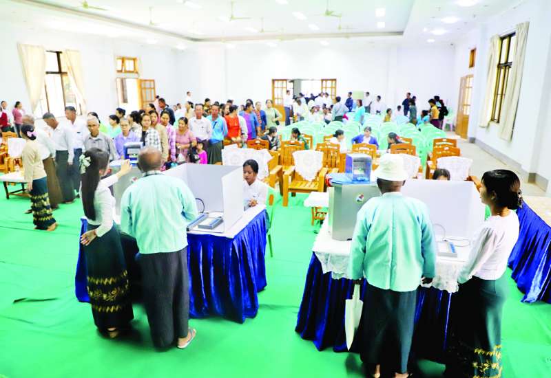 ပြည်ထောင်စုရွေးကောက်ပွဲကော်မရှင်သည် ဇမ္ဗူသီရိမြို့နယ်၌ မြန်မာအီလက်ထရောနစ် မဲပေးစက်ရှင်းလင်းပြသခြင်းနှင့် လက်တွေ့သရုပ်ပြ စမ်းသပ်မဲပေးခြင်းများကို ဒုတိယနေ့အဖြစ် ဇမ္ဗူသီရိမြို့နယ် အထွေထွေအုပ်ချုပ်ရေးဦးစီးဌာန အစည်းအဝေးခန်းမ၌ ဆောင်ရွက်သည်။
