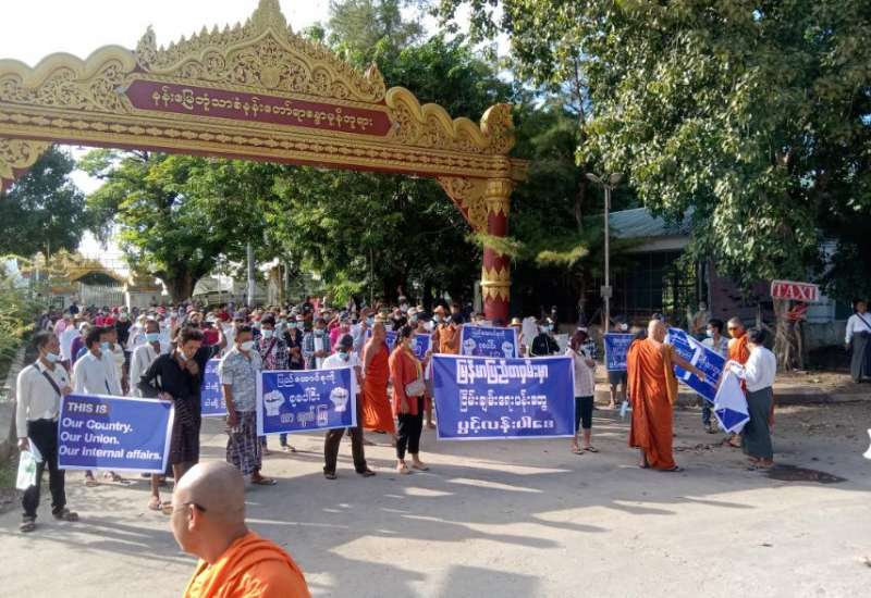 မြန်မာ့ပြည်တွင်းအရေးကို ဝင်ရောက်စွက်ဖက်နေသူများအား ရှုတ်ချဆန္ဒထုတ်ဖော်ပွဲကို ယနေ့မွန်းလွဲ ၃ နာရီက မန္တလေး၊ အောင်မြေသာစံမြို့နယ်၊ ဒေါနဘွားရပ်ကွက်၊ ၆၂×၆၆ လမ်းကြား၊ ၁၁×၁၂ လမ်းကြားရှိ နန်းမြေဘုံသာစံနန်းတော်ရာ စန္ဒမုနိဘုရားအရှေ့မုခ်၌ ပြုလုပ်ခဲ့သည်။